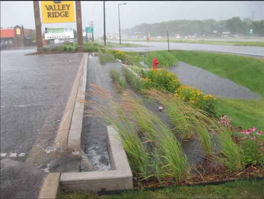 Green Infrastructure: Swales can be an important tool for retention and detention of stormwater runoff. Because they utilize vegetation, swales provide additional benefits, including cleaner air, carbon sequestration, improved biological habitat, and aesthetic value.