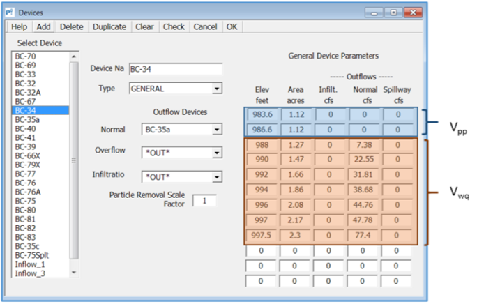 - Identify and assign the routing of water quality BMPs and pipe devices and assign in model
