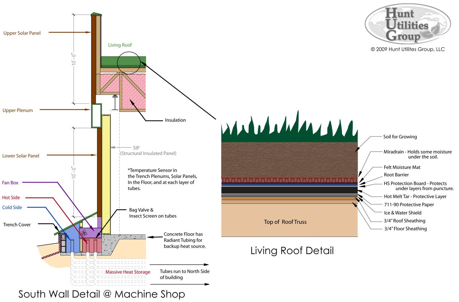 “When the Hunt Utilities Group's Resilient Living Campus needed a prototyping and fabrication shop, we decided on a living roof for it, primarily so we could gain the experience and demonstrate it. The additional, unique green space and limiting water run off was also an interest. We learned that it requires some serious structure, and that making sure it is all done extremely well to prevent expensive, hard to find leaks is critical. Fortunately, we have not experienced any leaks, yet. We have found the space useful for solar panel testing and watching shooting stars” (Ryan Hunt).