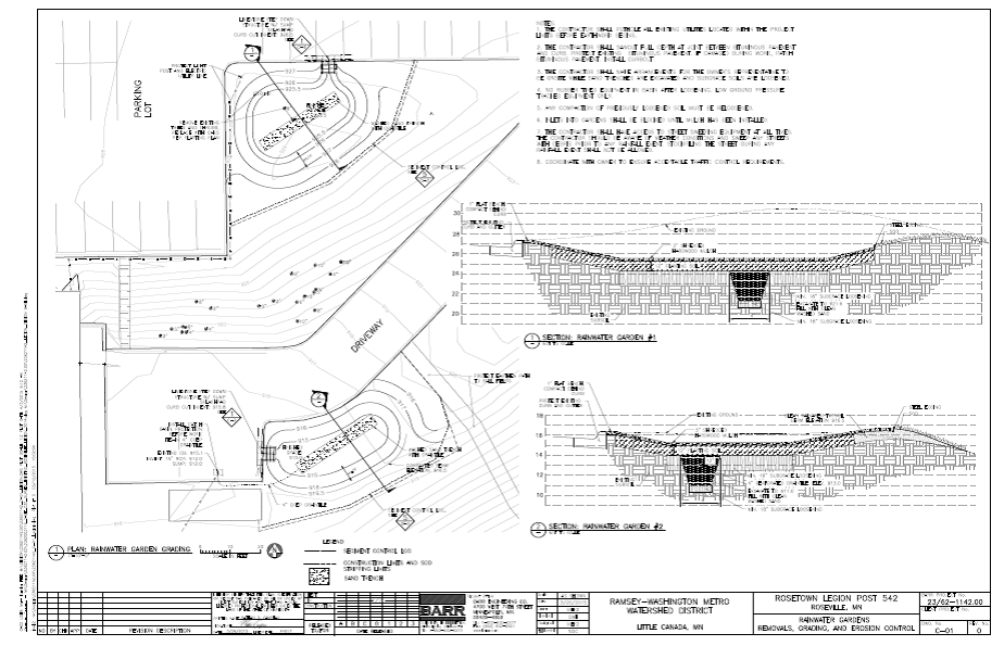 As part of a watershed properties study of commercial parcels begun in 2014, Ramsey-Washington Metro Watershed District identified green space adjacent to the parking lot of the Rosetown American Legion Post 542 in Roseville, Minnesota. An unused turf area was targeted for a commercially sized infiltration basin. Collaborating with the American Legion leadership, the project was constructed in 2015 as part of a series of BMPs identified during the initial watershed properties study.