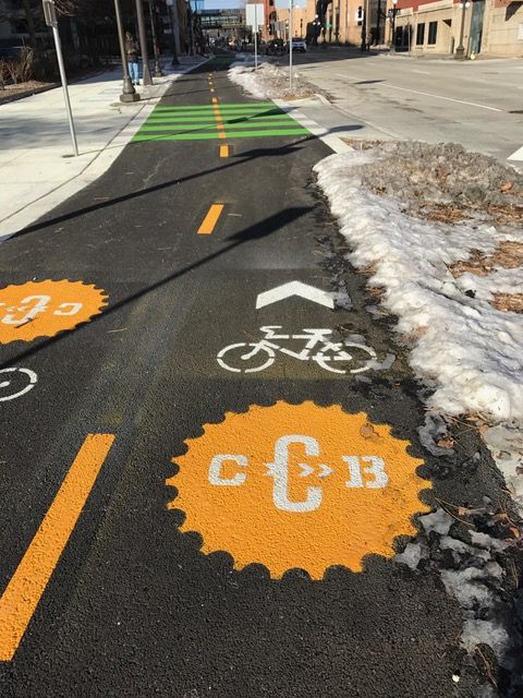 This image shows a bike lane in St Paul MN