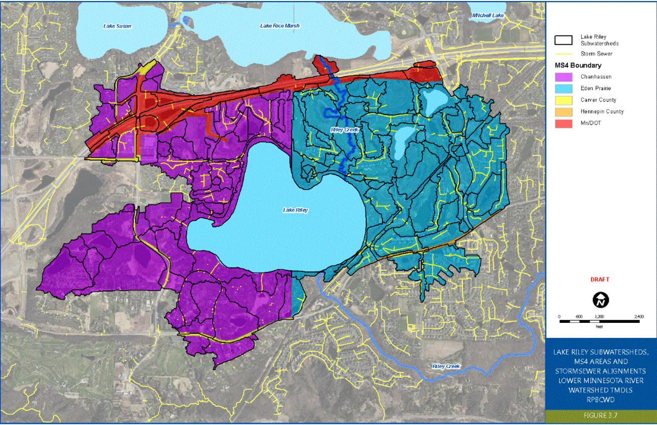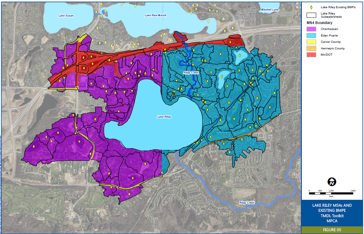 The TP TMDL for Lake Riley shows that two (2) MS4s are required to reduce annual TP loading (i.e., the Cities of Chanhassen (MS400079) and Eden Prairie (MS400015)). An overview of general steps which should be taken by MS4s not meeting WLAs for approved TMDLs is included below.