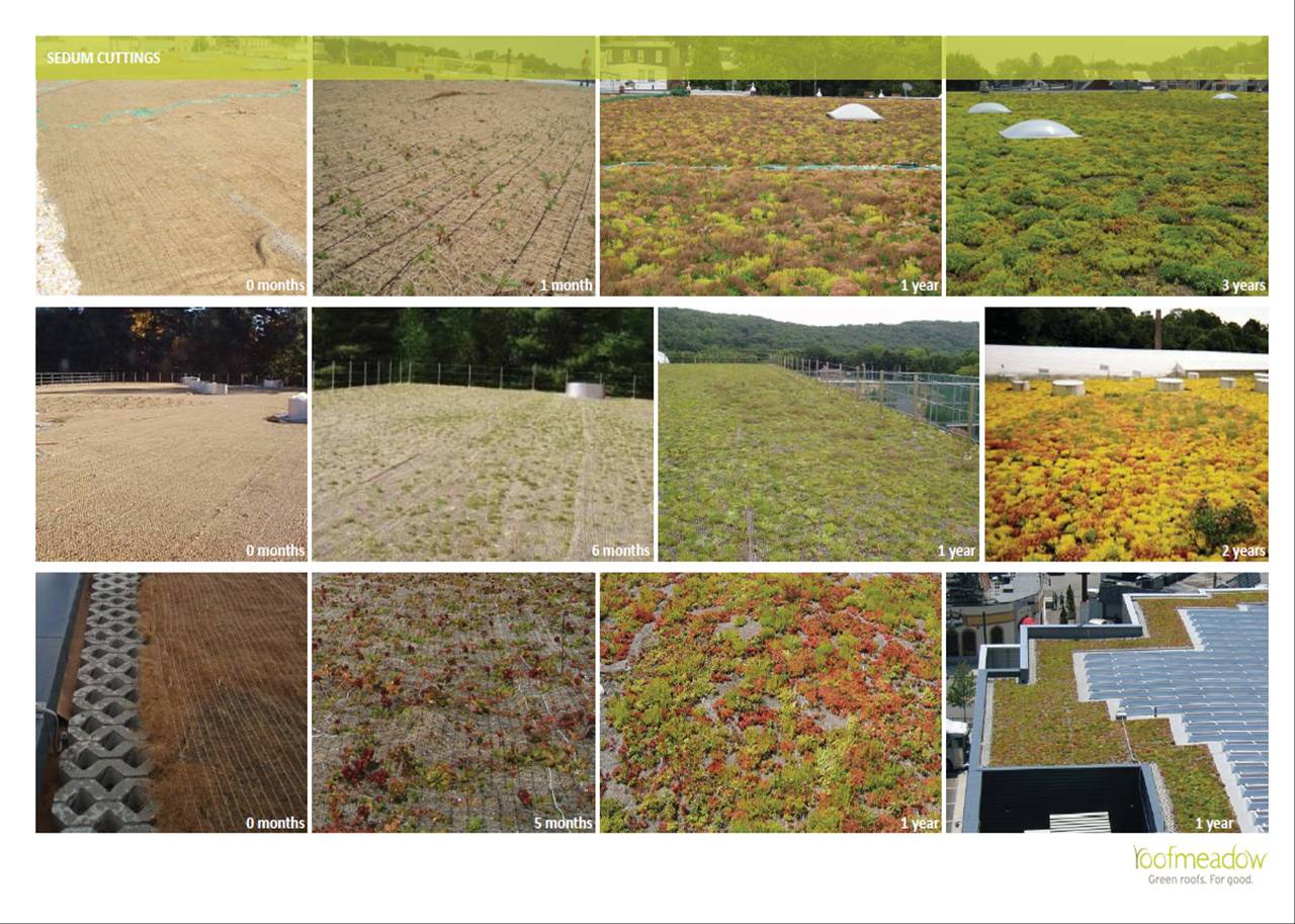 | Plugs | Plants in small pots | High | Medium | Low | Low-medium | Quick, 1-2 years depending on species, plug size, and initial planting density | Allows for most flexible and controlled planting design; can be added to green roofs started from cuttings or to pre-grown mats to increase species diversity |
