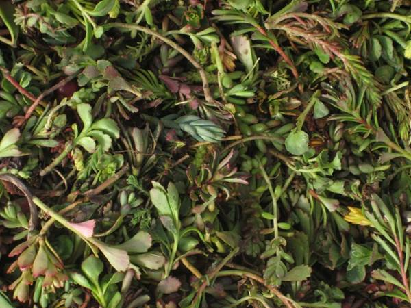 | Cuttings | Small pieces of sedums that are spread across or mixed into growing medium | Good | Low | Low | Low - More than plugs, less than seed | Quick, 1-2 years | Less control over final look than with plugs |