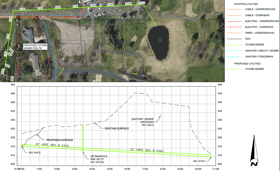 - the optimal pipe size and configuration that connected the stormwater pond to the existing irrigation system that did not require a pump (i.e., gravity flow).
