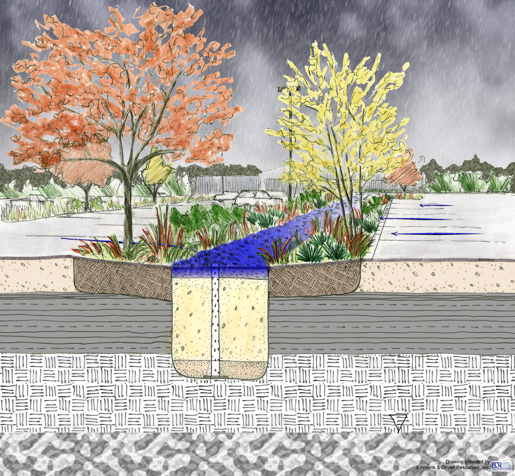 - Reduces volume of stormwater runoff