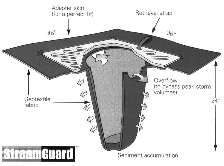 Filtration devices (inserts) allow stormwater to pass through filter media which are designed to reduce specific stormwater pollutants, but primarily solids and oils. Pollutants are captured physically or through sorption onto the filter media. Filters may either be inserts that are retrofitted into existing catch basins or manholes, or stand alone units supplied by a manufacturer.