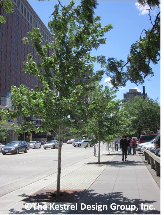 Tree BMPs on Marquette Avenue, Minneapolis Minnesota. Photo courtesy of the Kestrel Design Group, Inc.