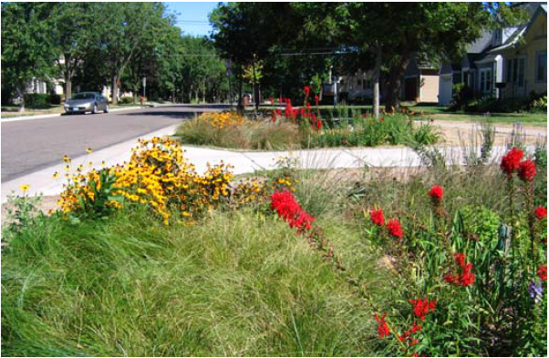 Bioinfiltration (rain garden) in a residential development. Photo courtesy of Katherine Sullivan.
