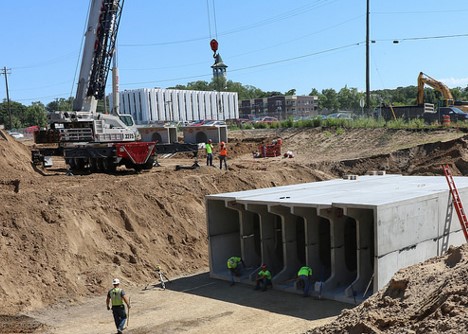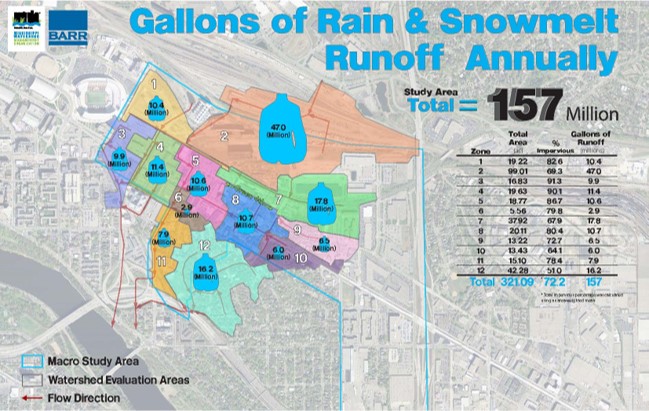 The 370-acre Towerside Innovation District is a rapidly developing area adjacent to the University of Minnesota and encompasses portions of Minneapolis and Saint Paul. Beginning in 2013, the Mississippi Watershed Management Organization (MWMO) (working with Barr Engineering Co. and Bruce Jacobson from the Minnesota Design Center) evaluated the feasibility of providing district stormwater management to create stormwater treatment and harvest and reuse opportunities.