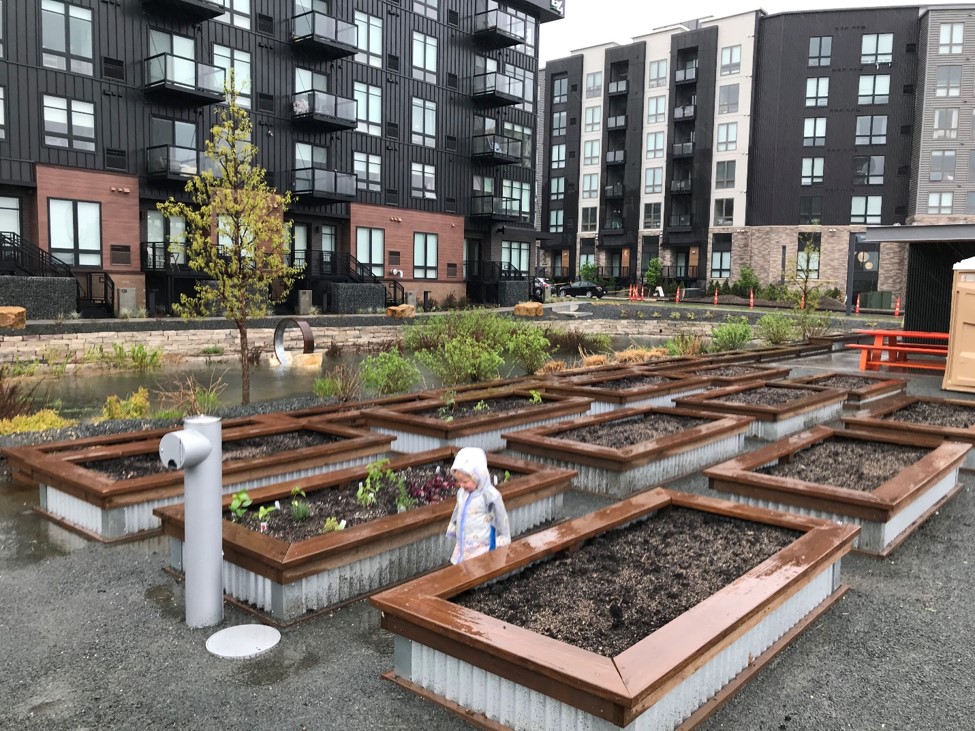 - Stormwater reused by the contributing developments and Minneapolis park for irrigation of plantings and a community garden.