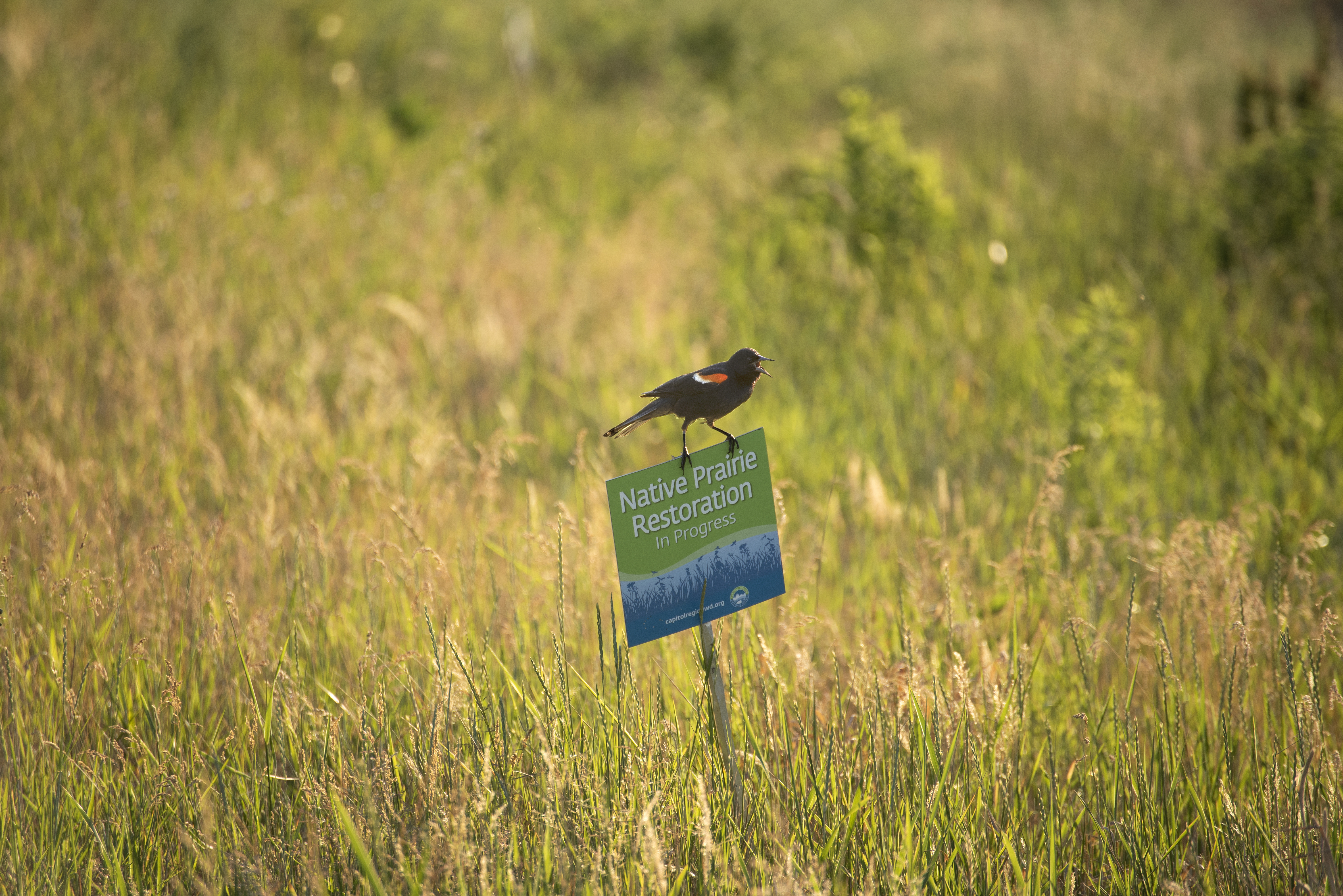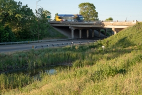 The Bee Line provides much needed pollinator and wildlife habitat along this stretch of busy road, particularly for the Rusty Patched Bumblebees. Native plants used along the Bee Line include 100 species of native wildflower, grasses, trees, and shrubs, including Golden Alexanders, Purple Prairie Clover, Dotted Blazing Star, Round Headed Bush Clover, New Jersey Tea, Compass plant, Late Figwort, Bushy Aster, Sneezeweed, Prairie Onion, Foxglove Penstemon, Little Bluestem, Northern Bedstraw, Joe Pye Weed, and more. Wildlife species observed include frogs, muskrats, and red-wing blackbirds. Planting types include rain gardens, mini-forests, prairies, native meadows, and wetlands.
