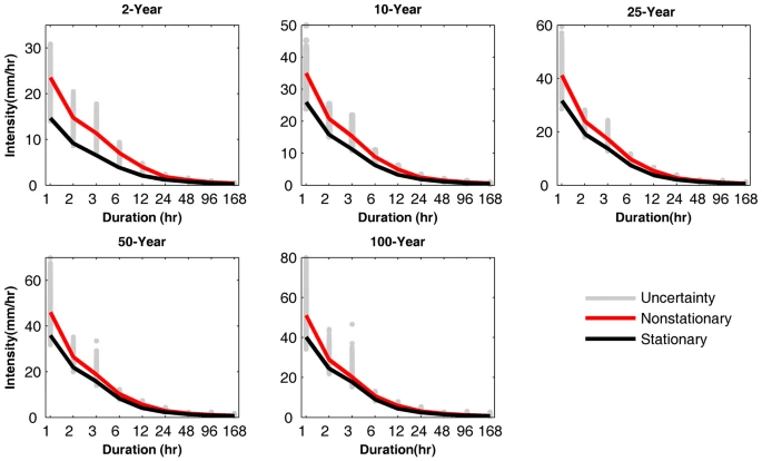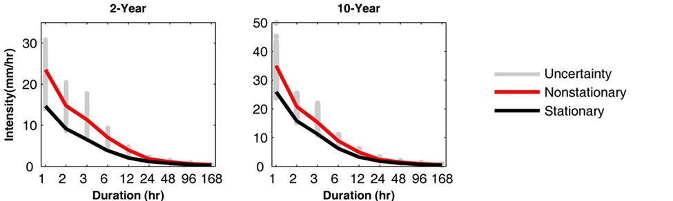 - Cheng, L. and AghaKouchak, A. (2014). Nonstationary Precipitation Intensity-Duration-Frequency Curves for Infrastructure Design in A Changing Climate. Scientific Reports. 4