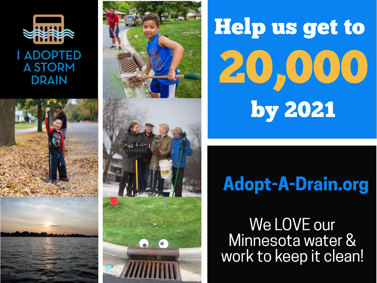 - Adopt-a-drain program - asks residents to adopt a storm drain in their neighborhood and keep it clear of leaves, trash, and other debris to reduce water pollution (for Metro Area & Rochester only).