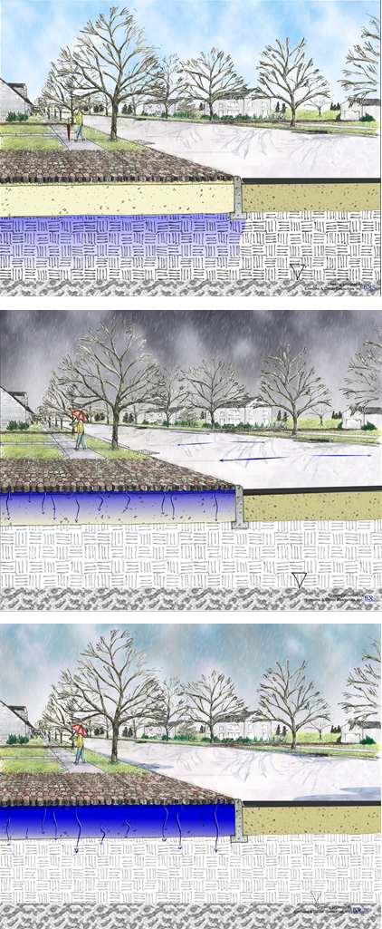 - Some designs may require consideration of storms in excess of the infiltration capabilities of the pavement. For these situations the design should ensure the excess runoff does not negatively impact special receiving waters (e.g.,trout streams) through the implementation of additional BMPs.