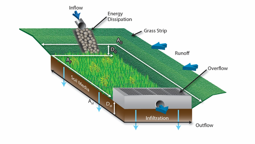 Infiltrator: Bioinfiltration - For the volume of runoff intercepted by the bioinfiltration system pollutant removal is 100 percent for phosphorus and TSS. Water bypassing the BMP receives no treatment. For water captured by an underdrain, pollutant removal is 85 percent for TSS and 53 percent to 71 percent for phosphorus, assuming the media does not leach phosphorus.