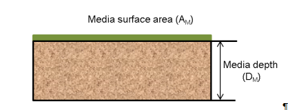 | Top surface area (ft2) | Bottom surface area (ft2) | Media depth (ft) | Number of trees | Required drawdown time (hrs) |