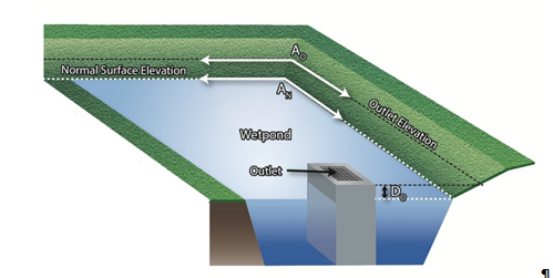 The design of the stormwater pond was based around the MIDS calculator requirements for stormwater ponds. The typical configuration for a stormwater pond BMP is shown in the schematic to the right.