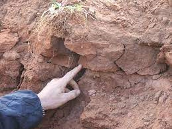 - Platy – flat peds that lie horizontally in the soil. Platy structure can be found in A, B and C horizons. It commonly occurs in an A horizon as the result of compaction.