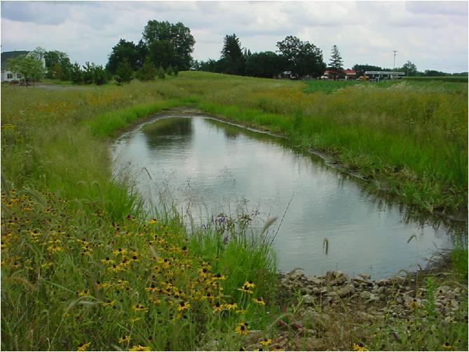 Generally speaking, the term “stormwater pond” may refer to any constructed basin that is built for the purpose of capturing and storing stormwater runoff, either temporarily or for an extended period of time, in order to prevent or mitigate downstream water quantity or quality impacts. Several distinct structure types (wet ponds, dry ponds, etc.) are included in this general category, and they are discussed in more detail in the Manual.