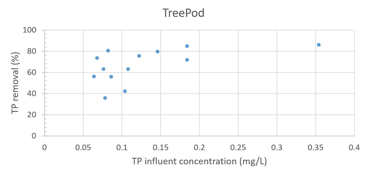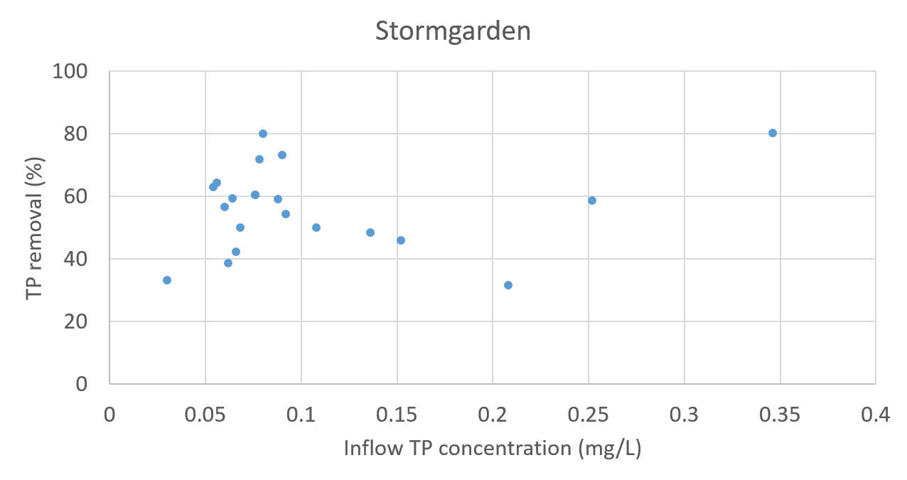 - StormGarden Modular Stormwater Bio-filtration System: Most of the influent concentrations were below the TAPE criteria of 0.1 mg/L. In the TAPE-approval document, the reported LCL was 53.4% based on inclusion of data below 0.1 mg/L.